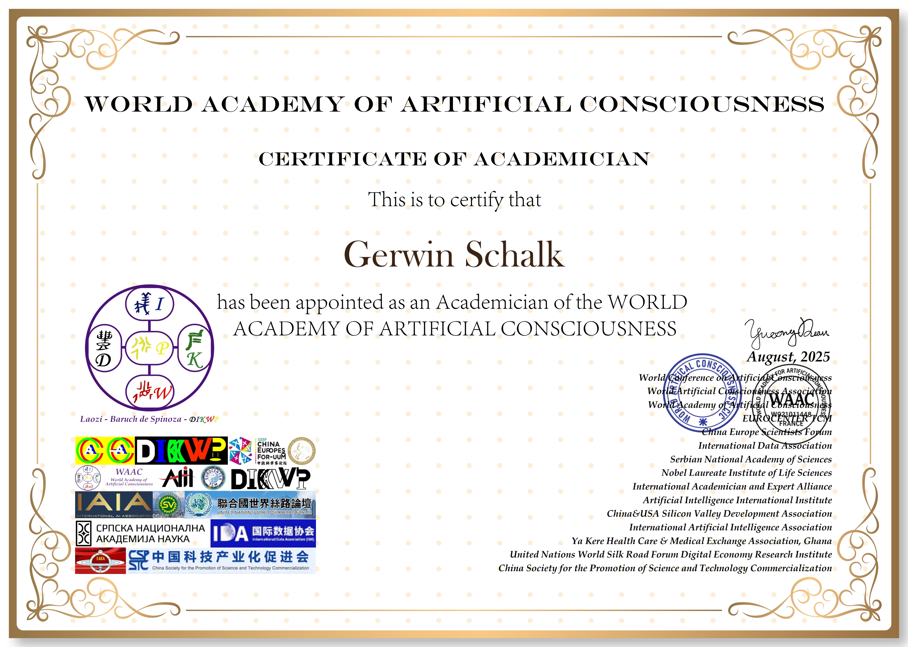 We are pleased to announce that Gerwin Schalk, a leading scholar in brain–computer interfaces (BCI) and neuroengineering, has been elected an Academician of the World Academy for Artificial Consciousness (WAAC) in recognition of his sustained and pioneering contributions to brain–machine communication and to the assessment of disorders of consciousness (DoC).